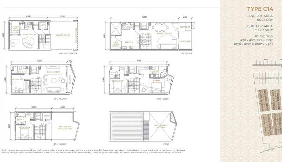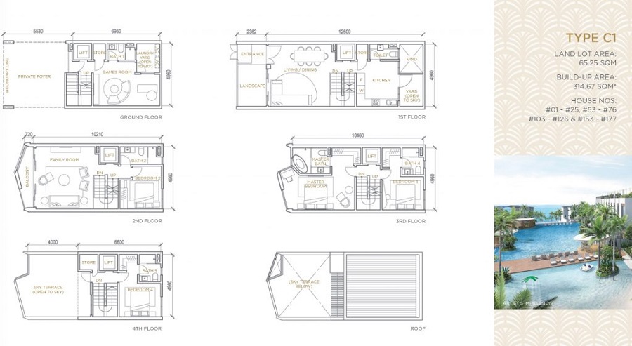 Type C1 & C1A (mirror image) 4 Bedroom 314.7sqm Built-Up Floor Plans