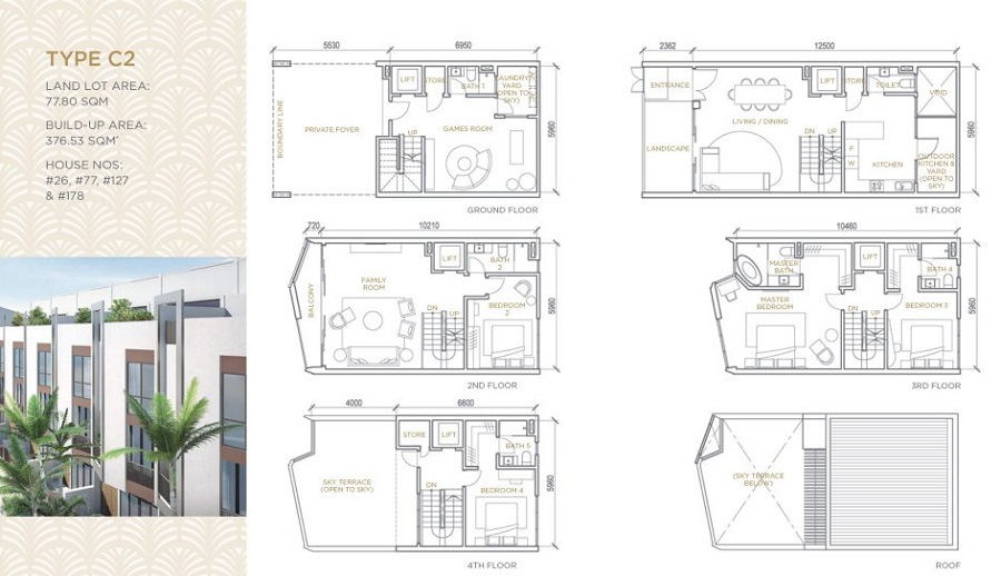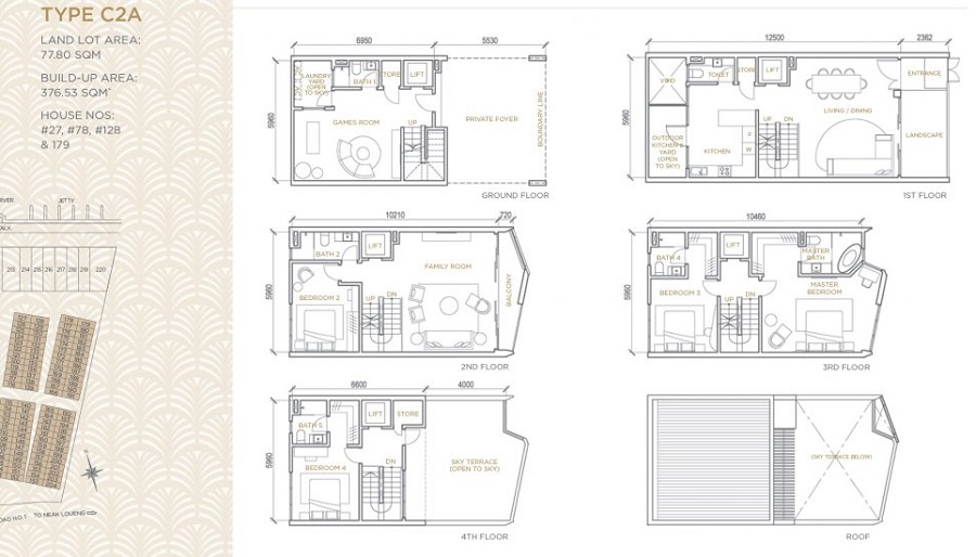 Type C2 & C2A (mirror image) 4 Bedroom 376.5sqm Built-Up Floor Plans