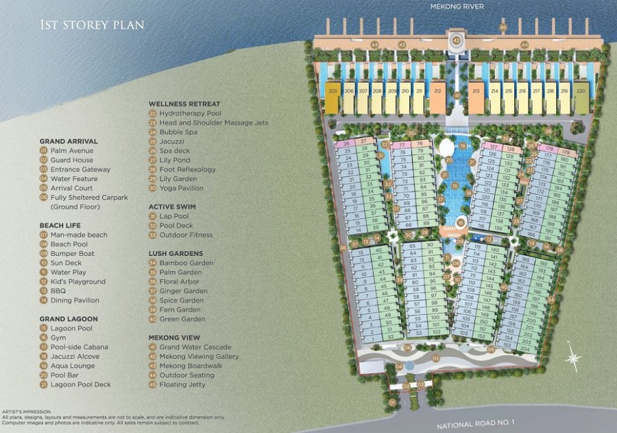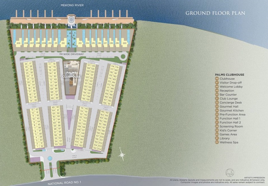 Please note the immediate river in front of The Palms has been reclaimed, so the Mekong River is now a distance from The Palms