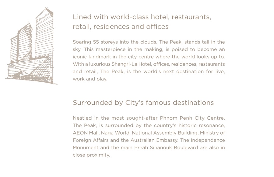 The Peak Cambodia Offices Logo (Luxurious Business Tower) The Peak Cambodia Offices with Shangri-La Rear Facade