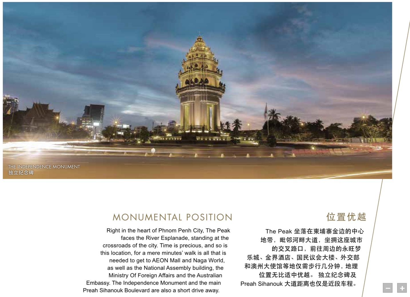 The Peak Cambodia is the ideal choice property for the expatriates, foreign businessmen and the rich locals aspiring for a prestigious, trendy and convenient lifestyle in a integrated mixed development with a 5-storey shopping downstairs and a 5-star hotel next door complete with hotel facilities and prime office space.