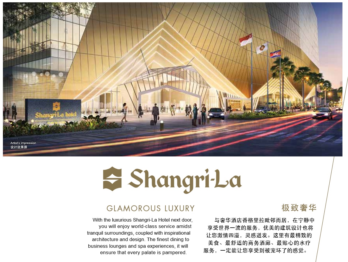 Type:Integrated Mixed development with 2 towers of Luxury Apartments, 5-storey Shopping Mall at the base, 1 tower of Shangri-La Hotel & offices