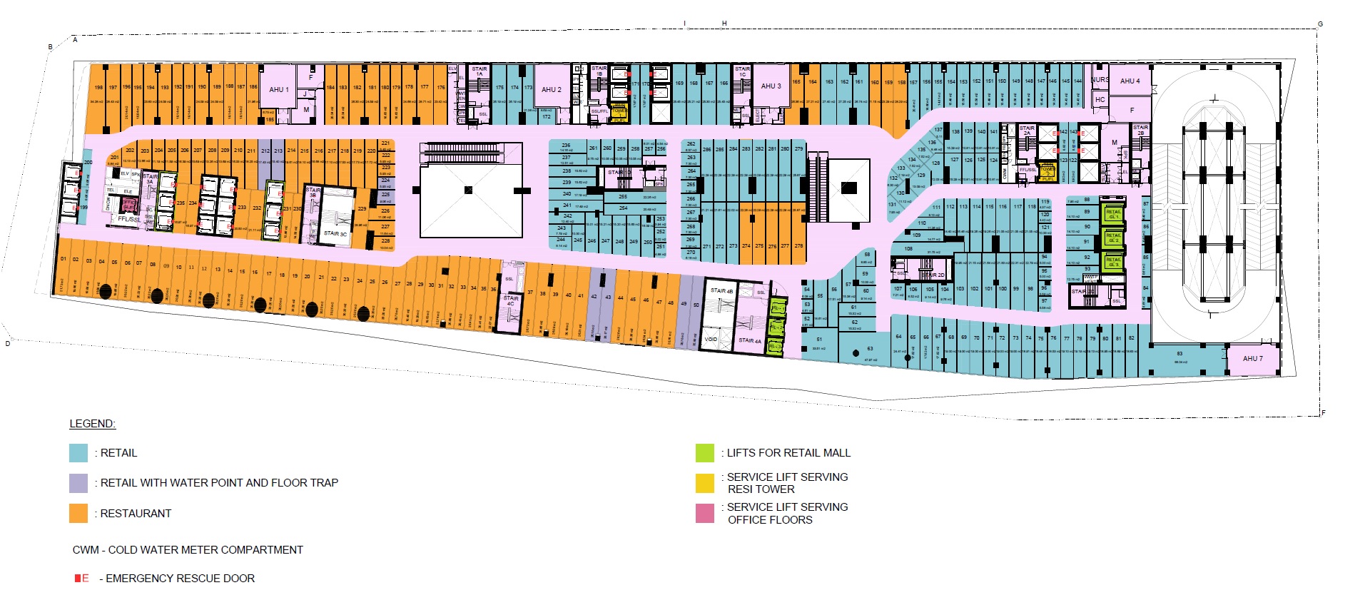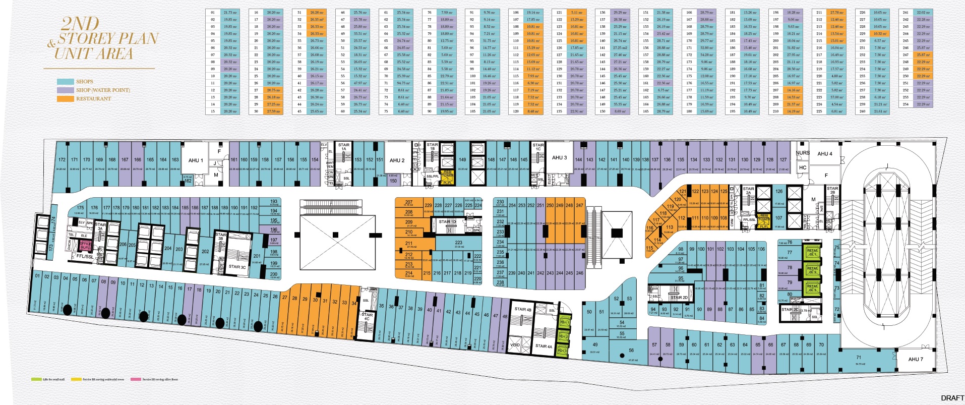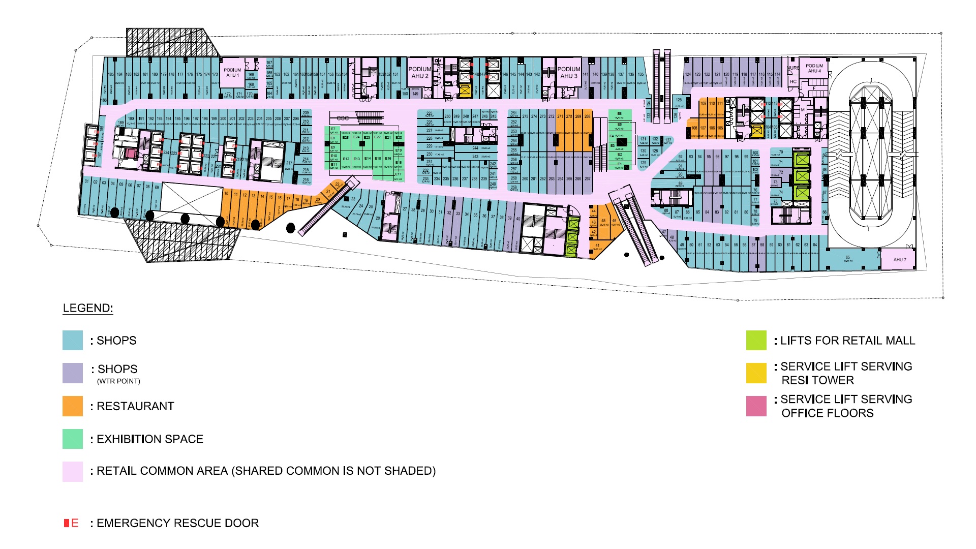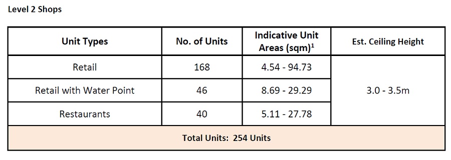 Number of units : Shops Level 254 units. Apartments: 1,014 (507 units in Tower 1 & 507 units in Tower 2)