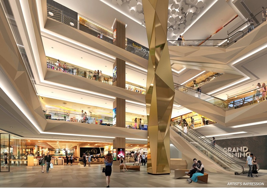 Grand entrance to The Peak Shoppes from Lower Grand & Mezzanine leading to Level 1 Atrium