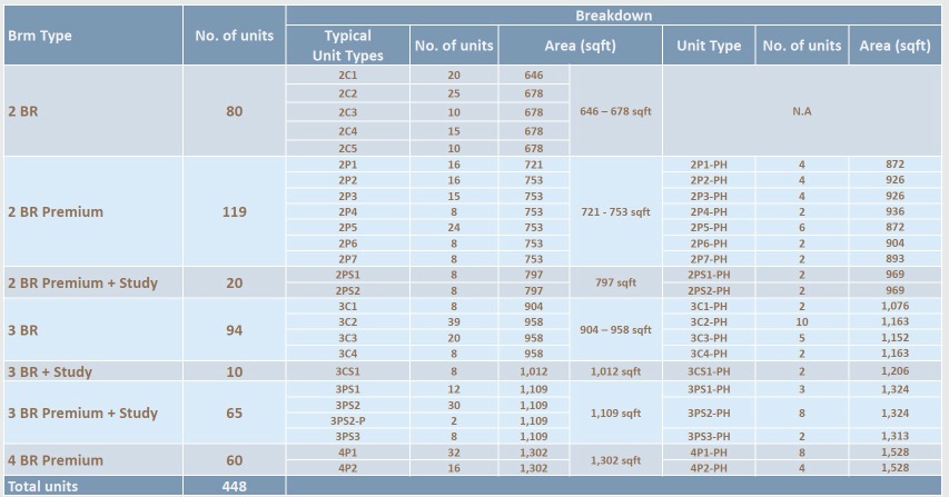 448 units over 16 blocks of 5-storeys and 1 Childcare center