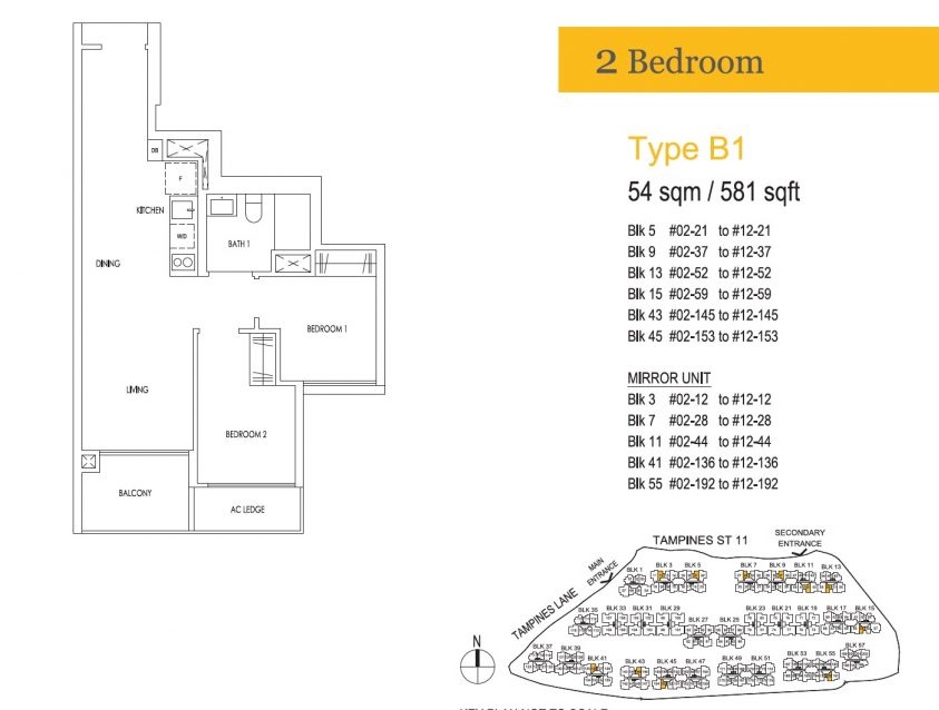 2 Bedroom (581sqft) from $946,000 / $1,628psf – last 2