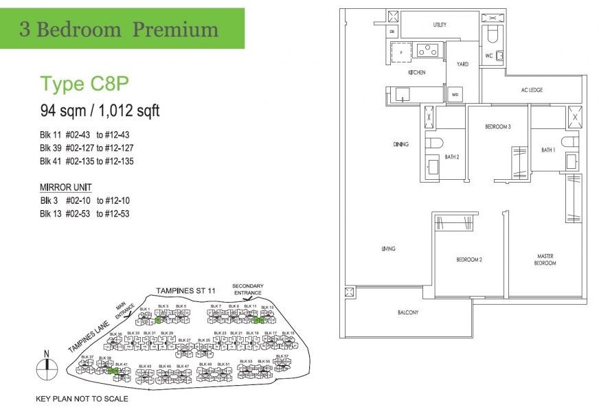 3 Bedroom Premium (1012-1033sqft) from $1,463,000 / $1,445psf – last 16