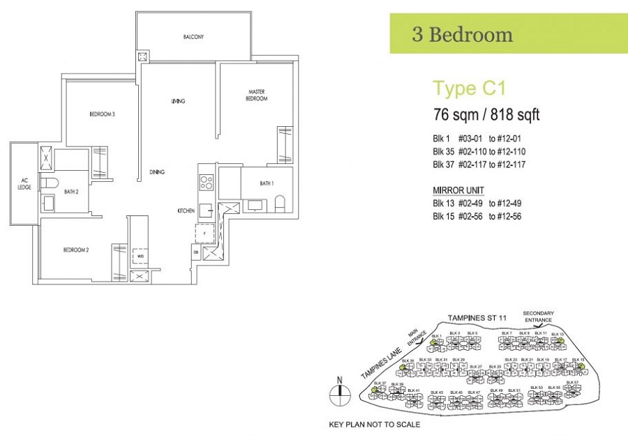 3 Bedroom (915-947sqft) from $1,235,000 / $1,349psf