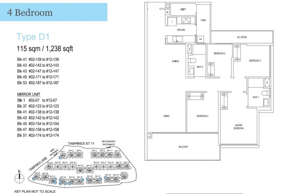 4 Bedroom (1238-1270sqft) from $1,631,000 / $1,317psf