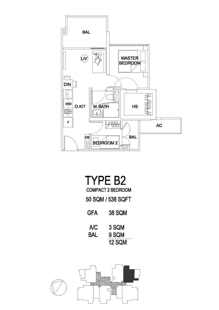 2 bedroom #10-03 (516sqft) from $1,040,163 ($2,016psf)