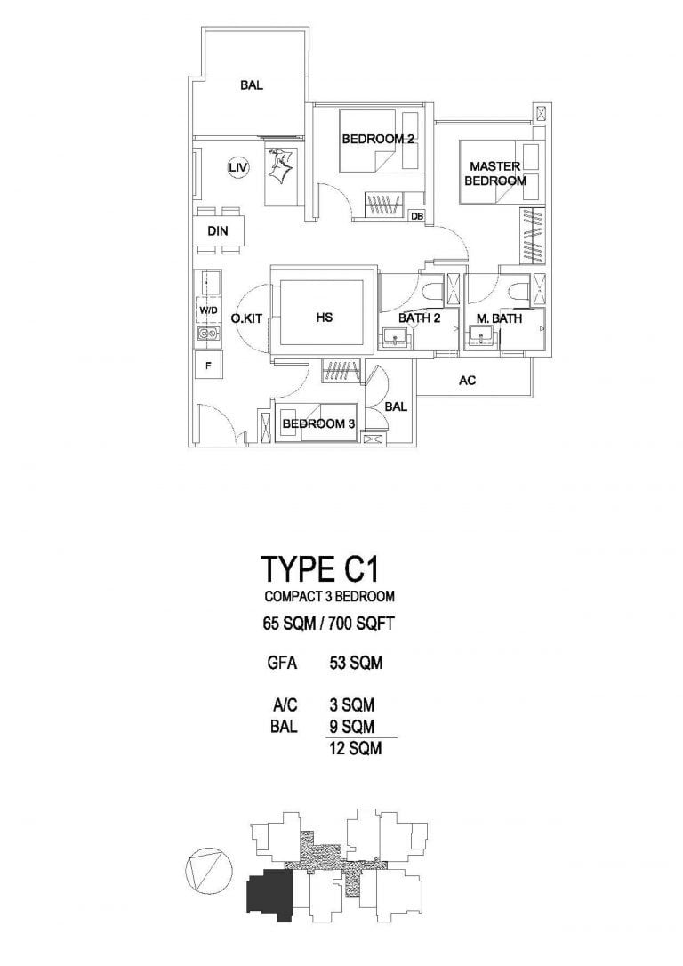 3 bedroom compact #21-03 (732sqft) from $1,460,033 ($1,995psf)