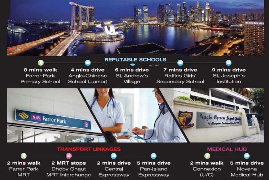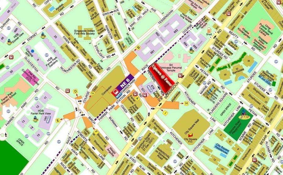 Uptown at Farrer / Perumal Road will be accessible with Farrer Park MRT Station that is located right at your doorstep. The MRT Station on the North East Line connects directly to Boon Keng, Potong Pasir, VivoCity, Dhoby Ghaut and Chinatown, making public transport access to other parts of Singapore a breeze.