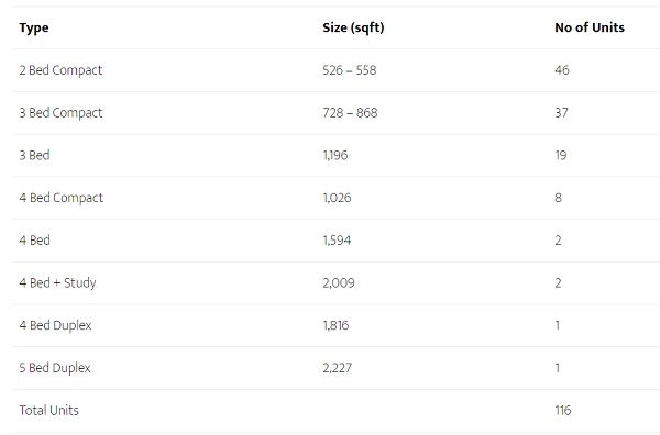 Uptown @ Farrer Park MRT Unit Mix