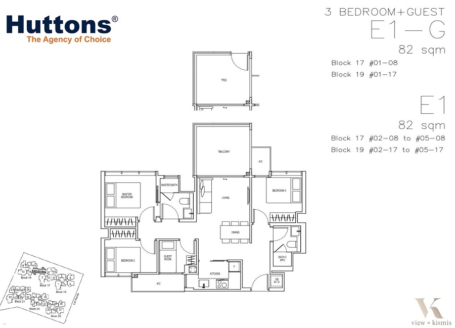 3 bedroom + Guest (883 – 893sqft) - 31 units
