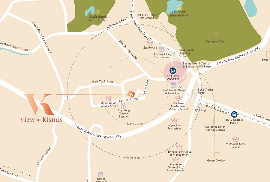 View at Kismis is near to good schools with plenty of shopping malls and eateries. It also stands on a elevated ground giving residents of View at Kismis a fantastic view of the surrounding greenery. The convenience that residents will get to enjoy here is incomparable as View at Kismis has the excellent connectivity coupled with proximity to amenities and facilities will definitely attract both homestayers and investors. View at Kismis is near to amenities including Giant supermarket @ Beauty World Centre, NTUC Fairprice supermarket @ Bukit Timah Plaza, and Cold Storage @ Clementi Arcade. The closest shopping malls are Beauty World Plaza, Bukit Timah Shopping Centre and Bukit Timah Plaza.